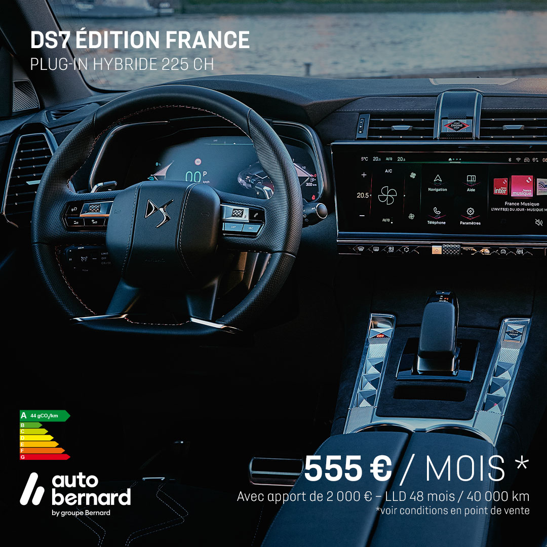 Avec ses finitions uniques et ses matériaux nobles, DS 7 ÉDITION FRANCE offre une expérience de voyage exceptionnelle, où chaque élément illustre le prestige et le confort d'un art de vivre raffiné.